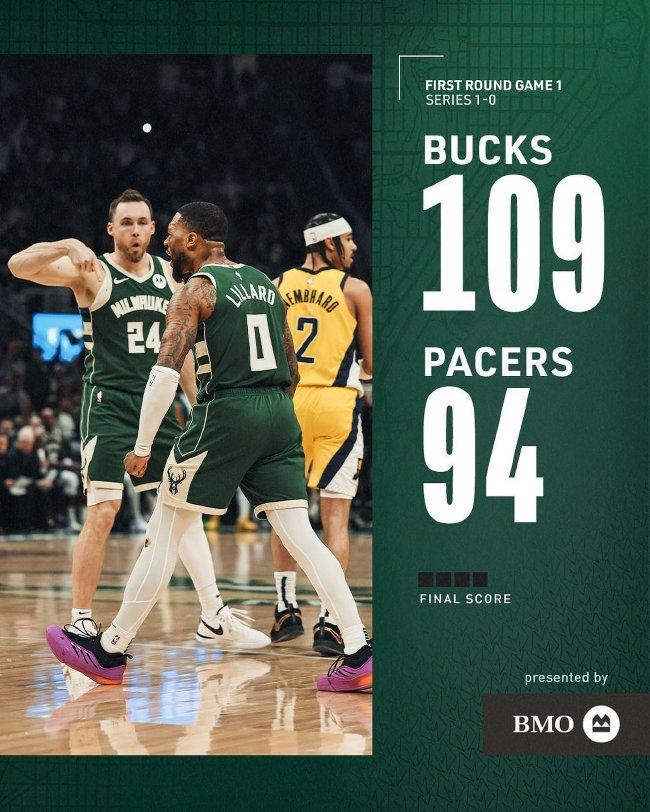 北京时分4月22日,NBA季后赛,雄鹿109-94力克走路者,大比分1-0逾越。
