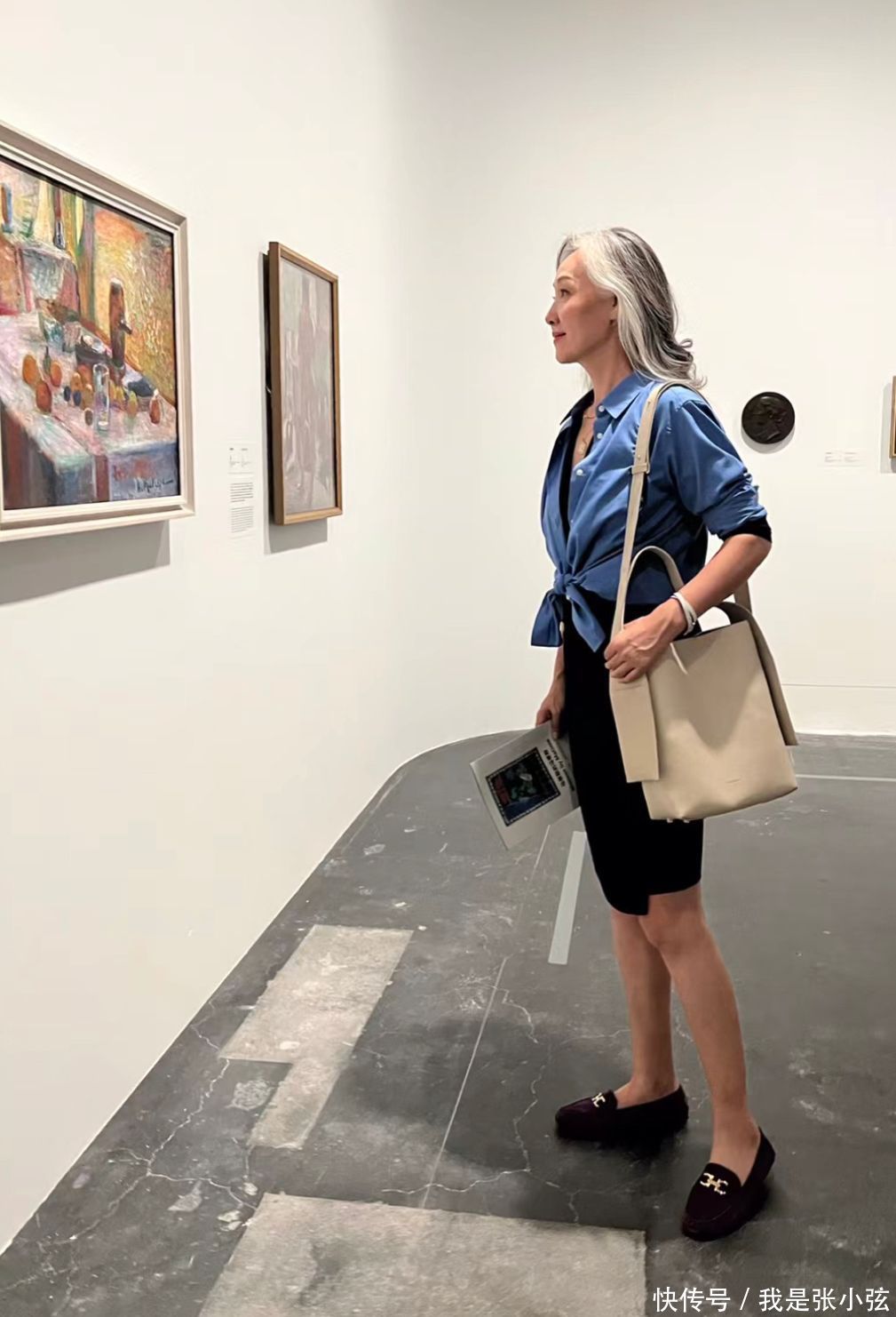 衬衫的配色遴荐也很关键,颜色的利用一定不可太灿艳花哨,许多女东谈主上了年龄,总可爱穿一些花衬衫。可本色上,配色越是清亮干净的衬衫,穿在身上反而越抬气质,况且垄断起来也更应答一些。这位63岁的奶奶挑选的衬衫从不花里胡梢,再加上解开领口显露的锁骨,更是增添了勾引力。